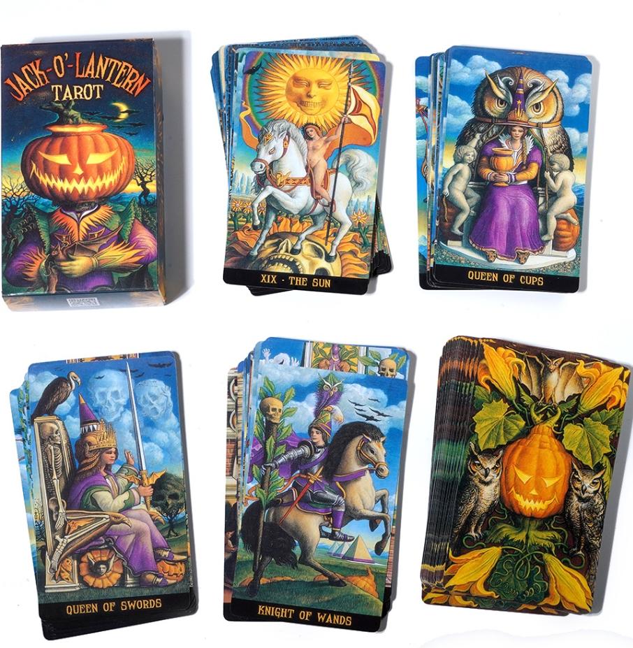 Discover the mystical world of divination with the Jack-O'-Lantern Tarot Card Deck. This unique Halloween set of fortune telling cards is perfect for those aged 18 and above, designed for hours of entertainment and introspection.