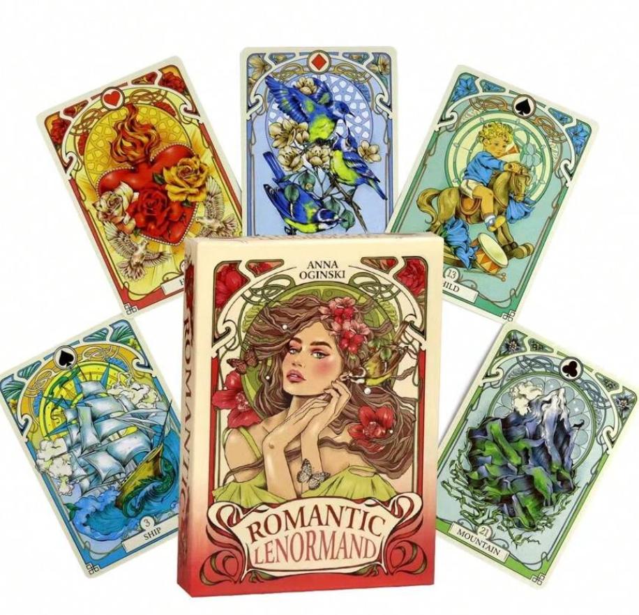 Embrace the richness of Lenormand Oracle Cards and explore the world of spiritual guidance with this romantic and visually captivating pack.
