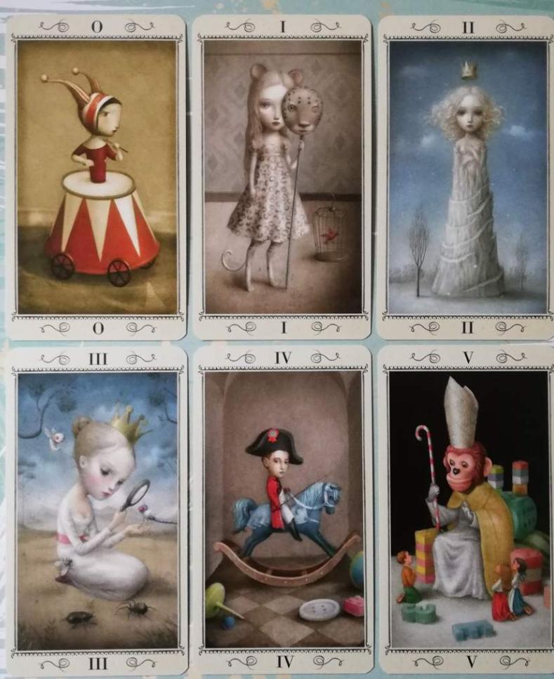 tarot deck moves between harmony and madness, capturing a wholly unique element of eerie innocence. These cards provide insight into complex questions, where the dark mingles with the light and reveals the shades of gray that illuminate our most profound
